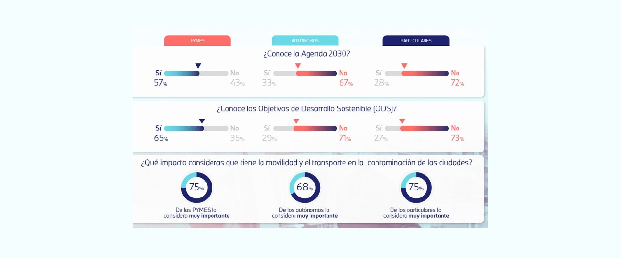 - Un 75% de las pymes, un 68% de los autónomos y un 75% de los particulares consideran muy importante el impacto que tienen la movilidad y el transporte en la contaminación de las ciudades