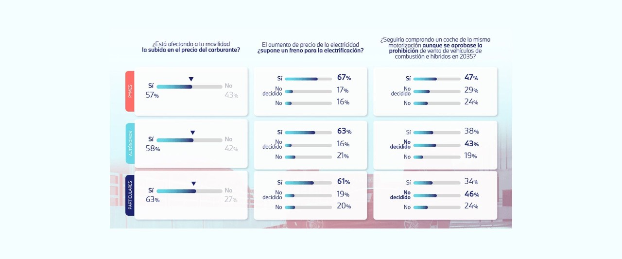 En este sentido, el estudio de Alphabet revela que un 77% de los particulares desconoce los planes MOVES, porcentaje que desciende ligeramente hasta el 70% en el caso de los autónomos. En cambio, son las pymes las que más conocimiento tienen de este tipo de ayudas, con un 54%.